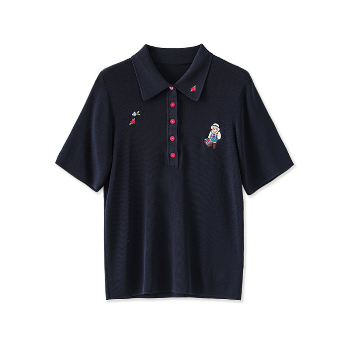 SRAVE PAULO 拉夫保羅法式時尚女POLO衫翻領小熊刺綉針織衫潮上衣