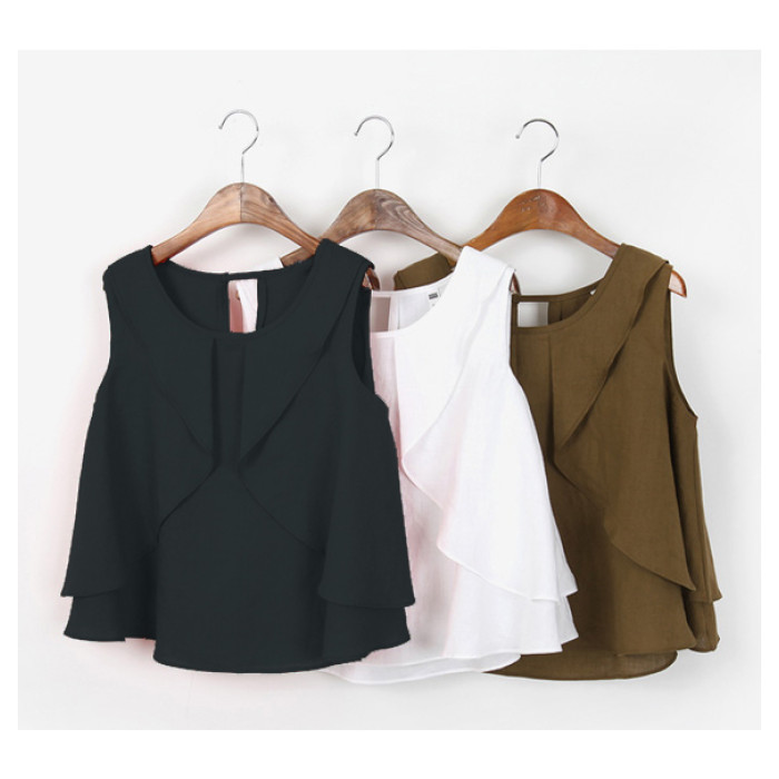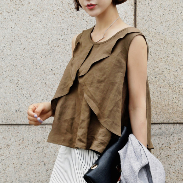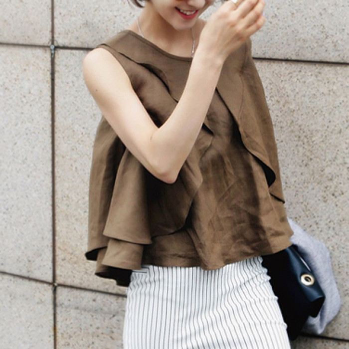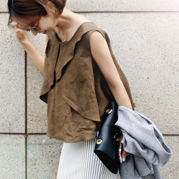 駝色 荷葉邊背心