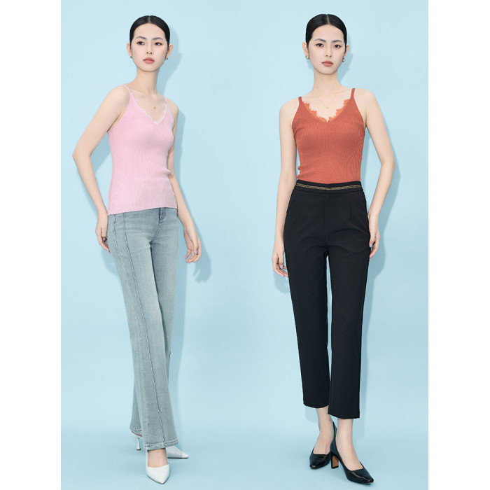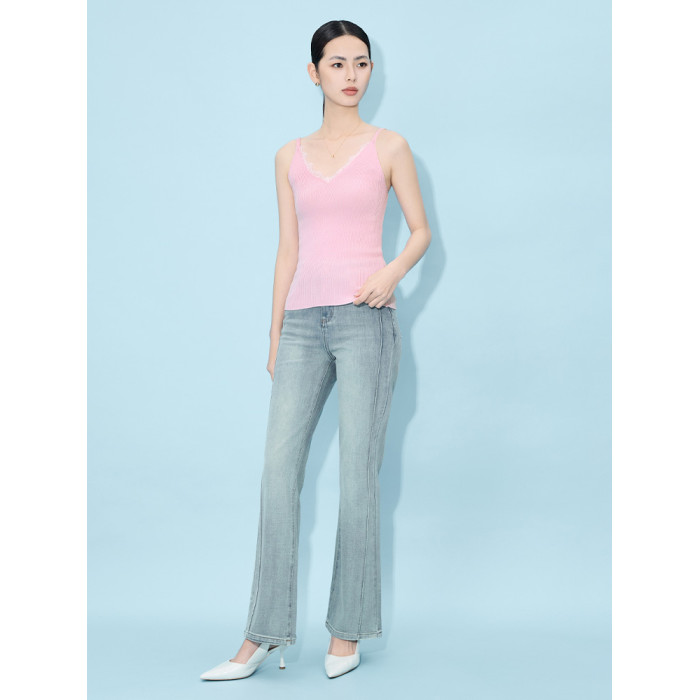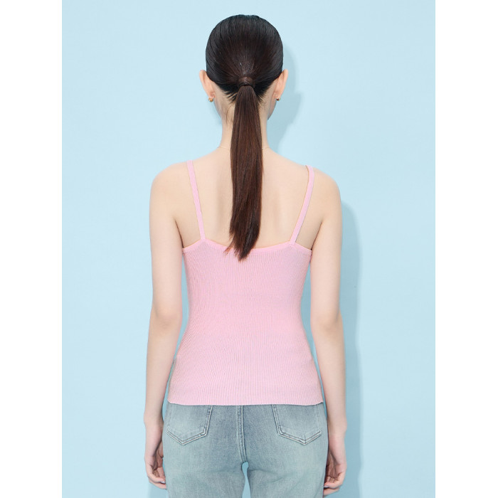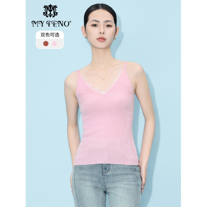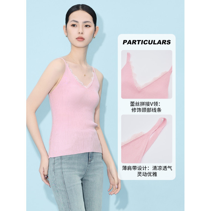 馬天奴2025春夏新款純色V領花邊吊帶衫針織衫背心打底內搭女時尚