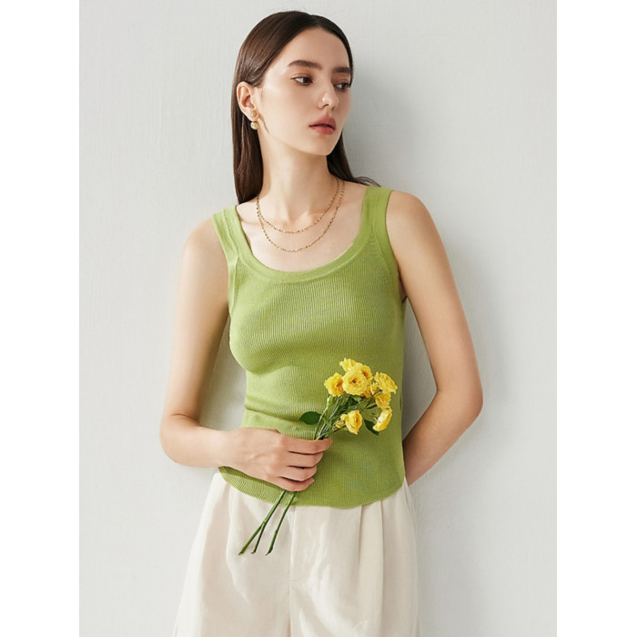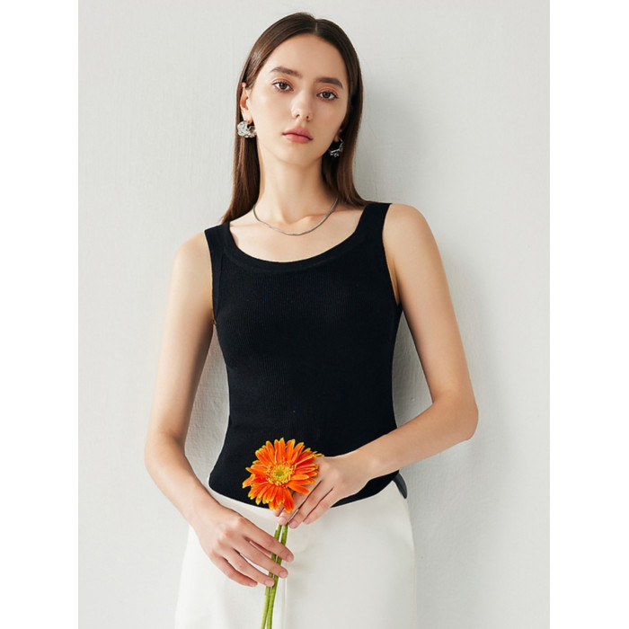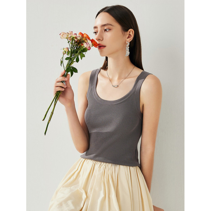 兆君2025春夏新款含桑蠶絲吊帶衫女純色無袖修身打底薄針織背心