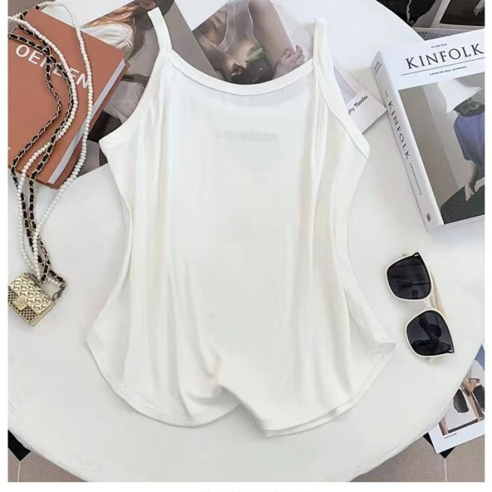 夏季新品字母款細肩帶女士背心吊帶衫外出內搭大碼胖MM