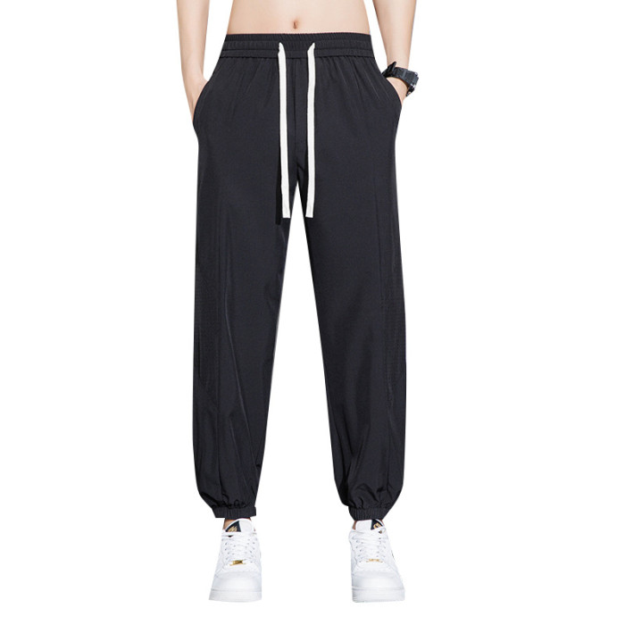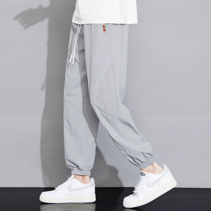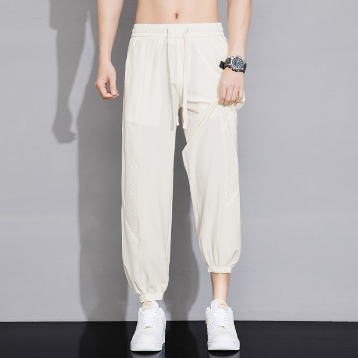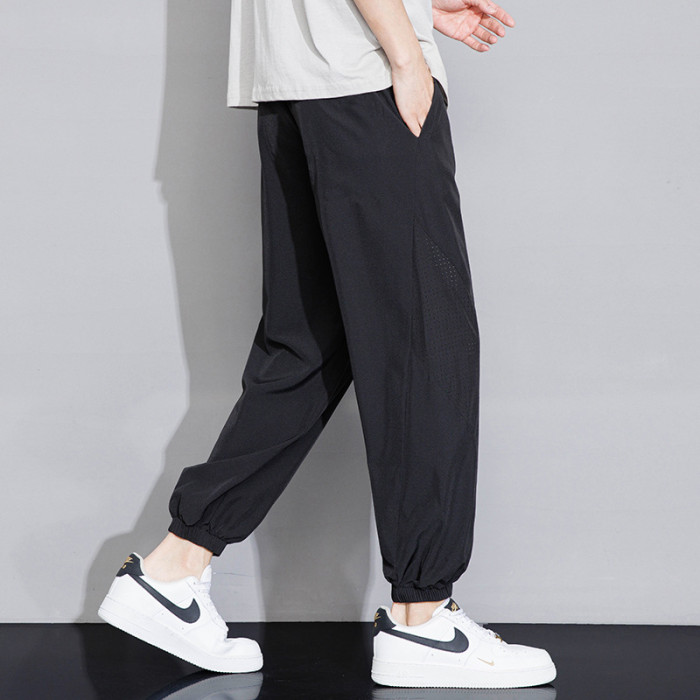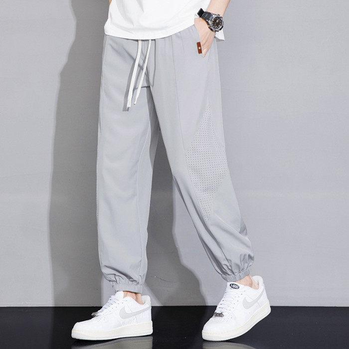 冰絲褲男士九分褲休閒褲男2025新款夏季透氣沖孔薄款速乾運動寬松