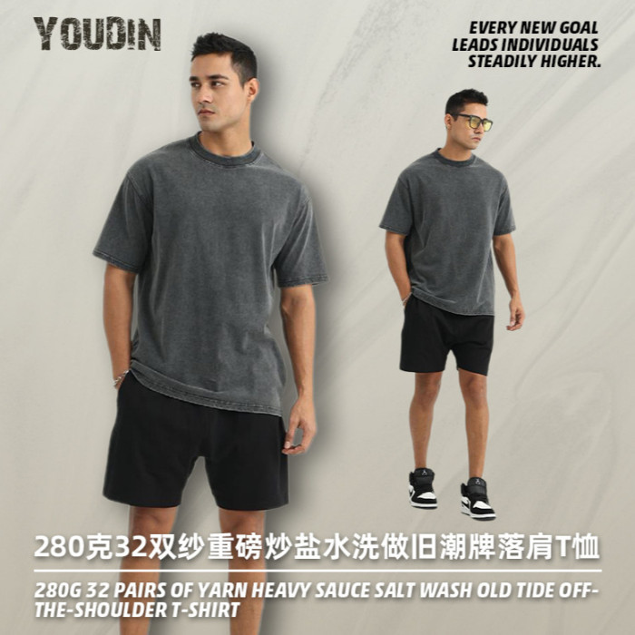 280克復古洗水做舊潮牌短袖T恤男寬松歐版oversize純棉T