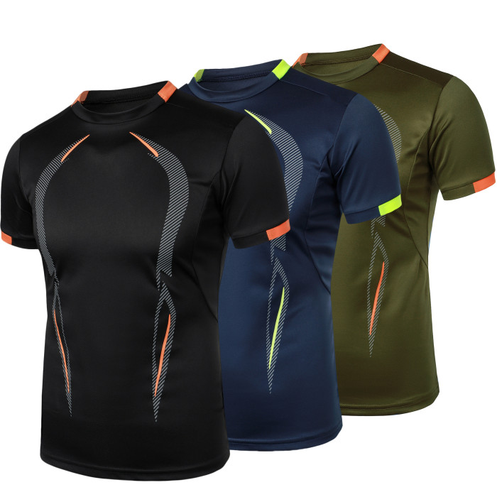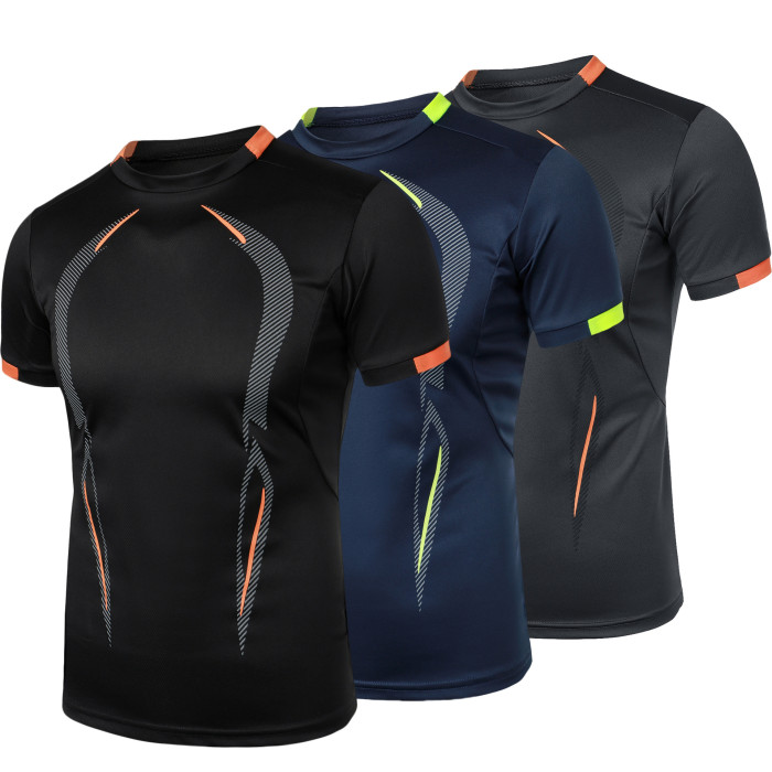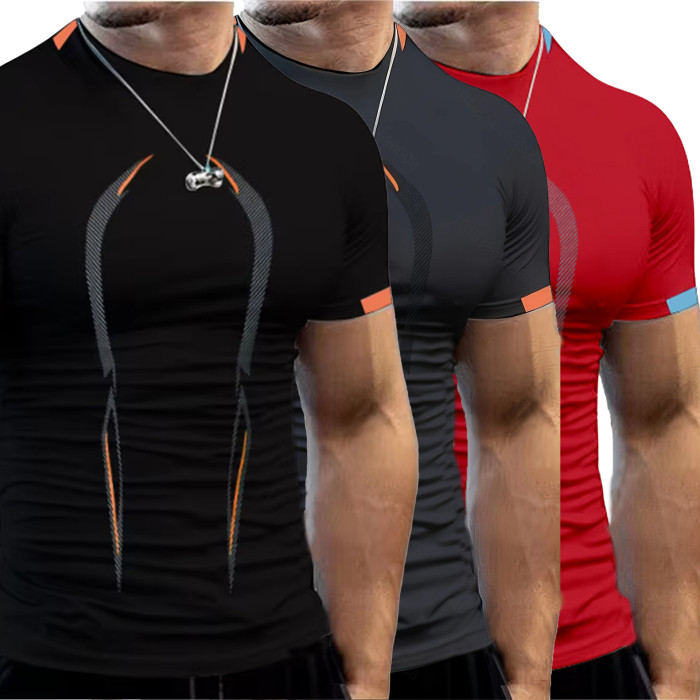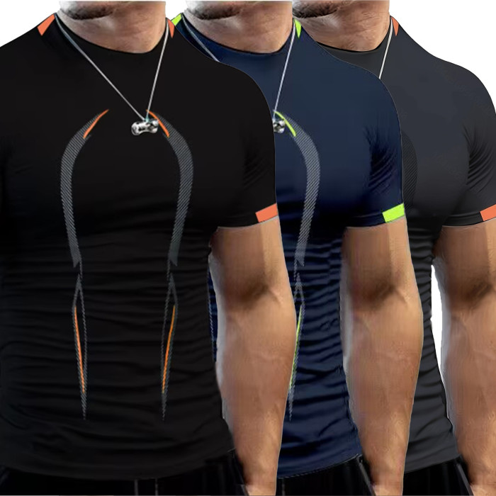 夏季男士健身運動訓練透氣短袖速乾衣男士運動時尚短袖T恤3件套