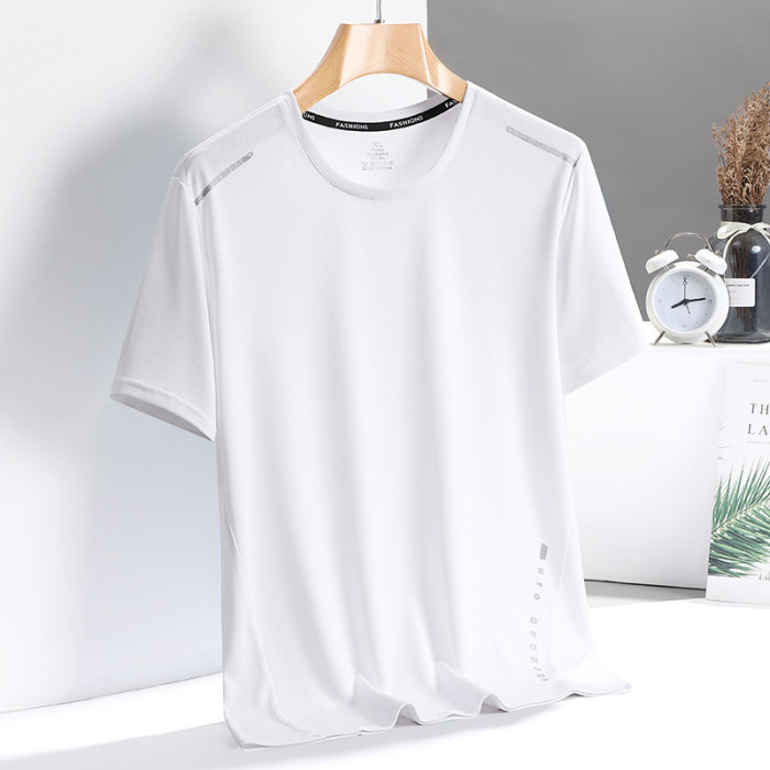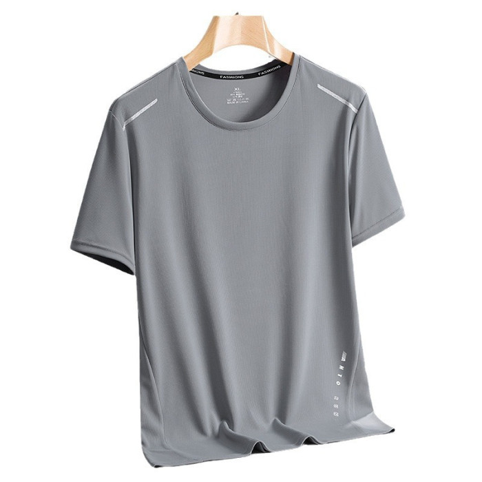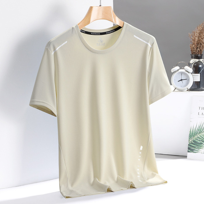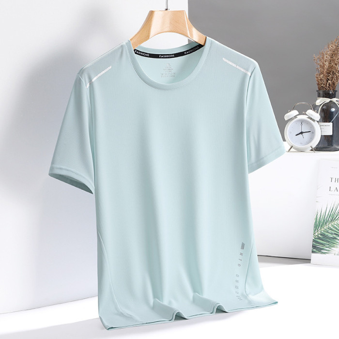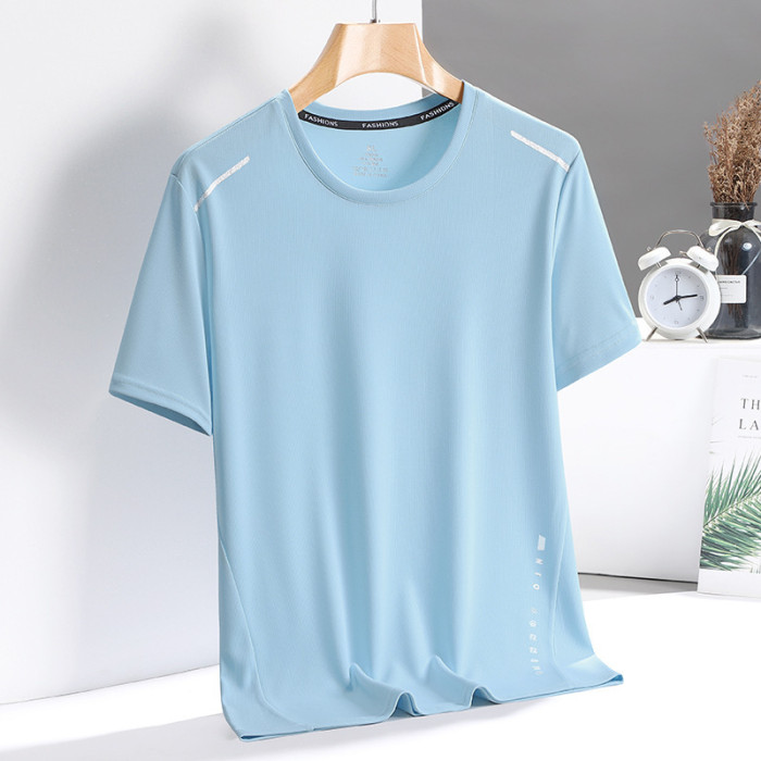 棉製冰絲短袖t恤男夏季薄款2025圓領印花寬松速乾體恤衫