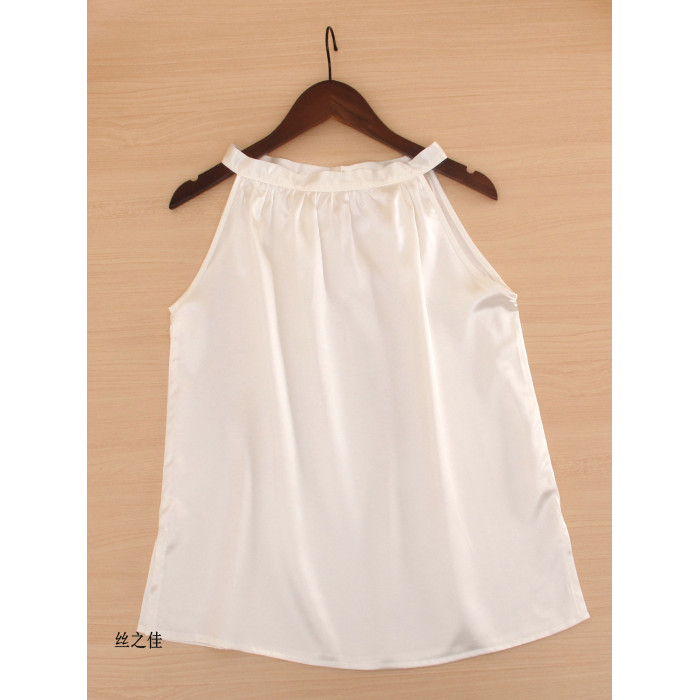 100桑蠶絲上衣吊帶衫女士背心紐釦背心素縐緞無袖套頭衫不拼掛脖