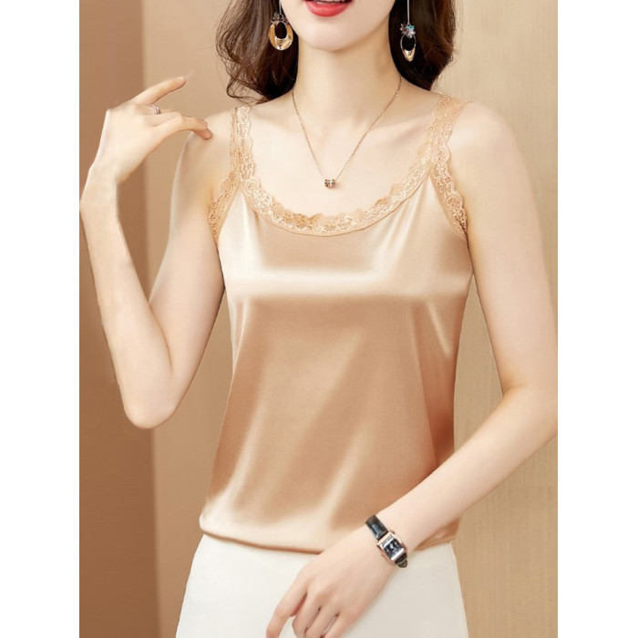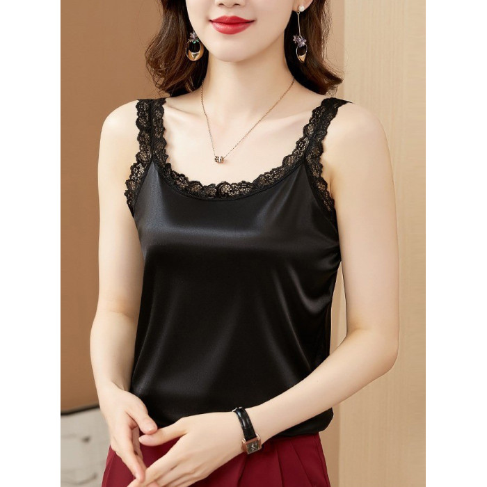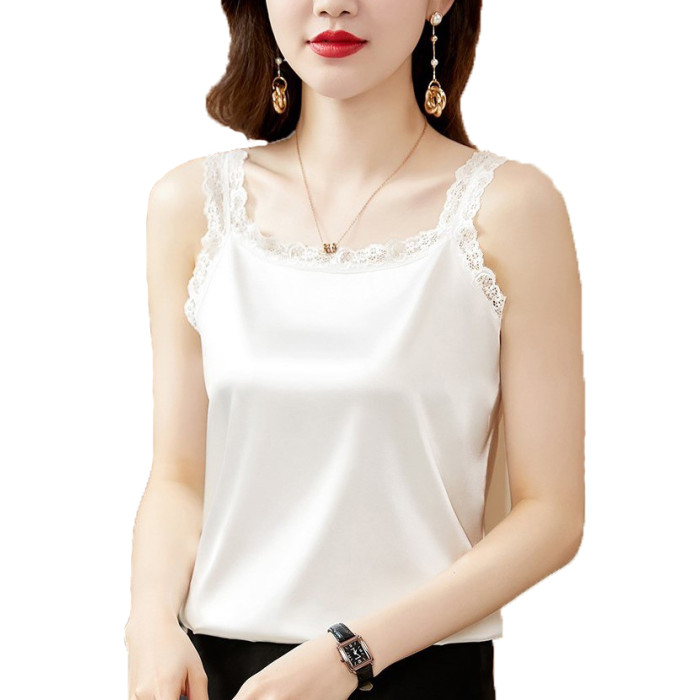 白領哥弟新女裝真絲小吊帶衫蕾絲背心桑蠶絲打底衫西裝內搭160斤