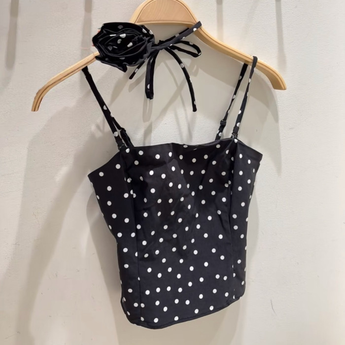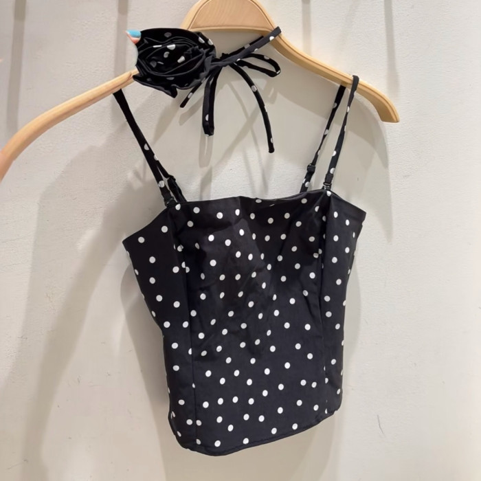 VM NY NB UR2025夏甜美減齡波點花朵裝飾打攬吊帶衫背心上衣女ins