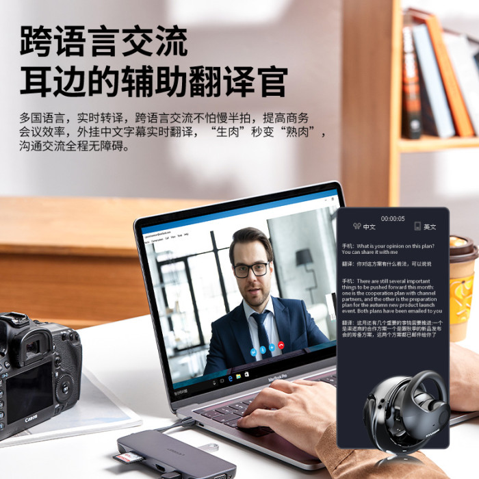 現代HY-T26pro讀寫智能翻譯耳機無線藍牙多國語言翻譯耳機掛耳式