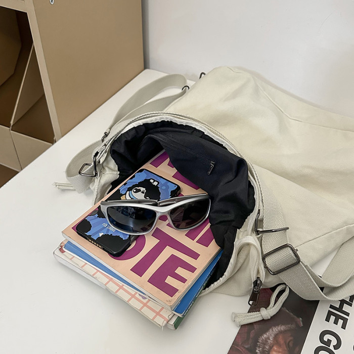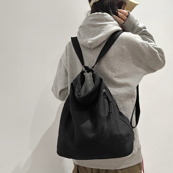 兩用單肩包大容量復古帆布包女2023新款大學生雙肩書包百搭托特包