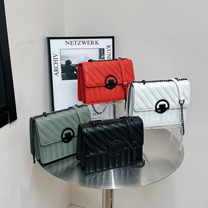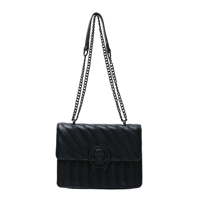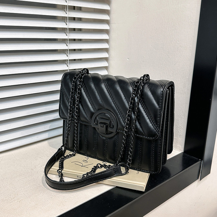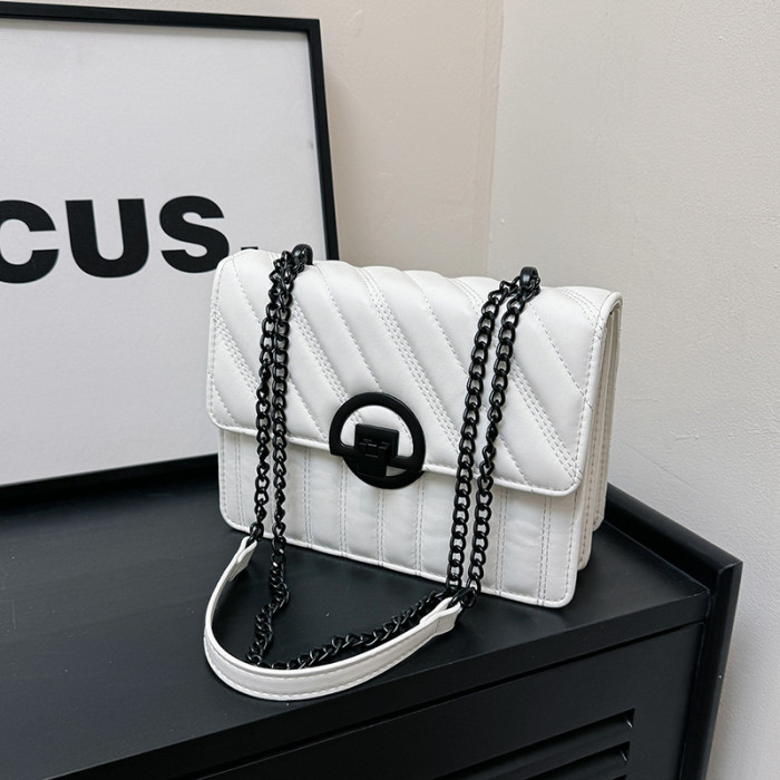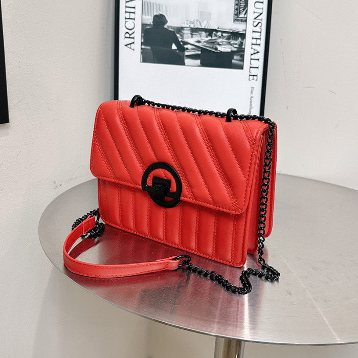 時尚休閒綉線小方包鏈條通勤女士單肩斜後背包