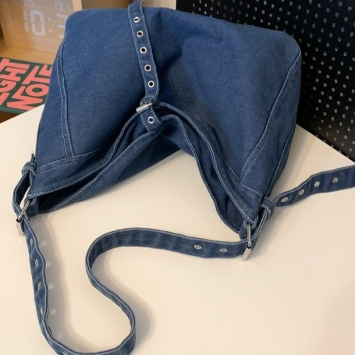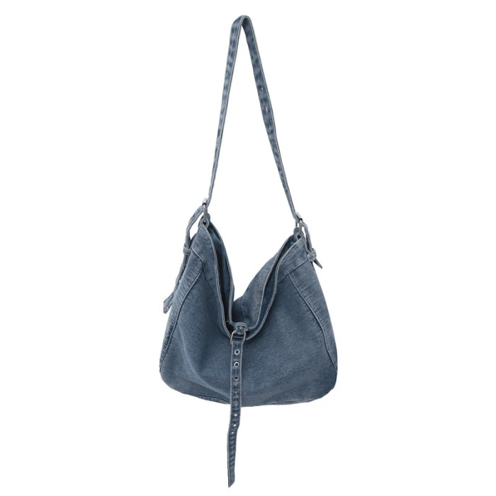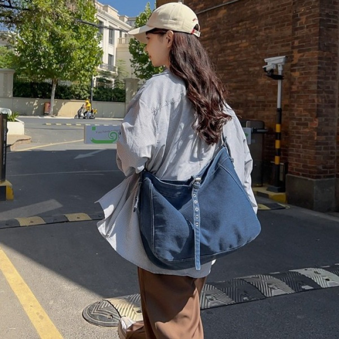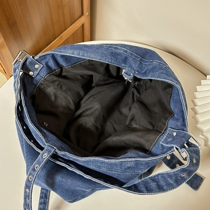 新款水洗牛仔單肩包復古工裝風大容量日常通勤上班托特包斜後背包包