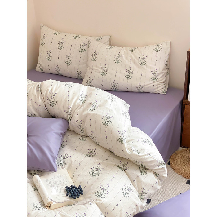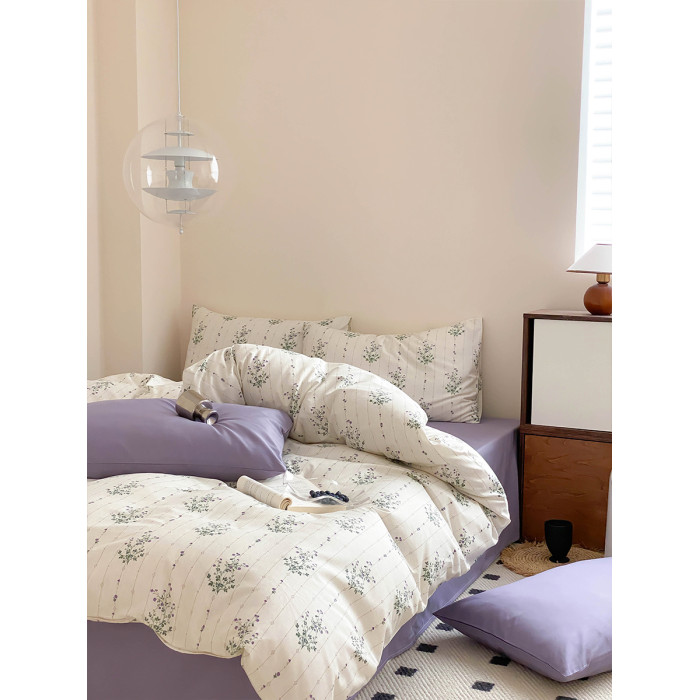 韓式經典紫色小碎花純棉全棉被套三四件套學生宿舍床單被罩1.8m床