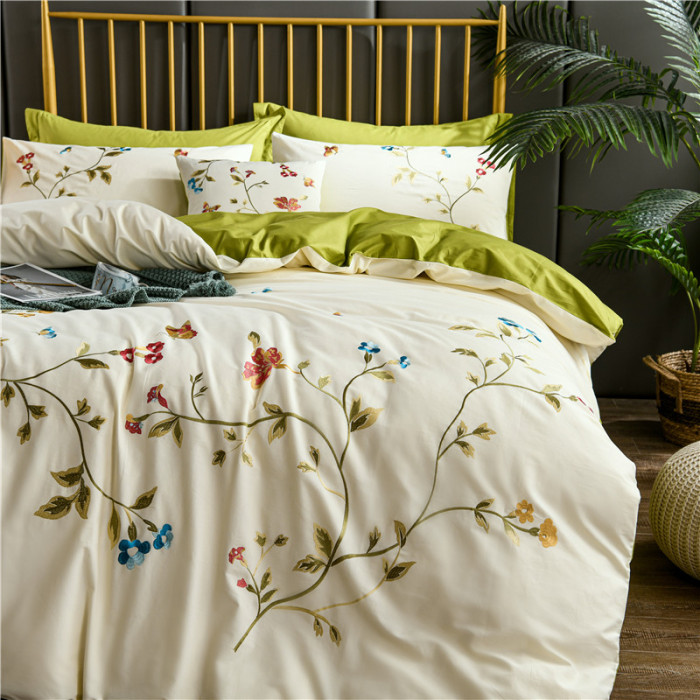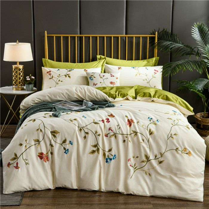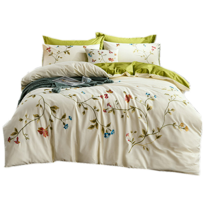 純棉簡約現代大氣綉花刺綉被套單件純棉全棉簡約田園AB版