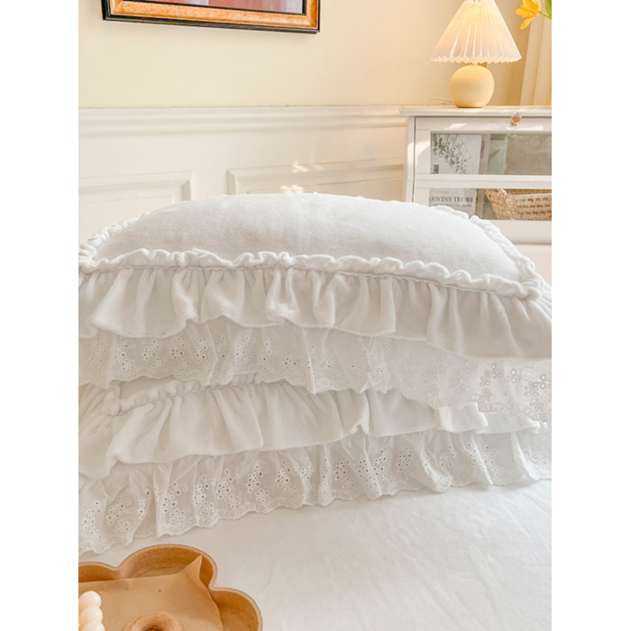 冬季少女心牛奶絨枕套一對裝48*74公主風雙層荷葉邊枕頭套珊瑚絨