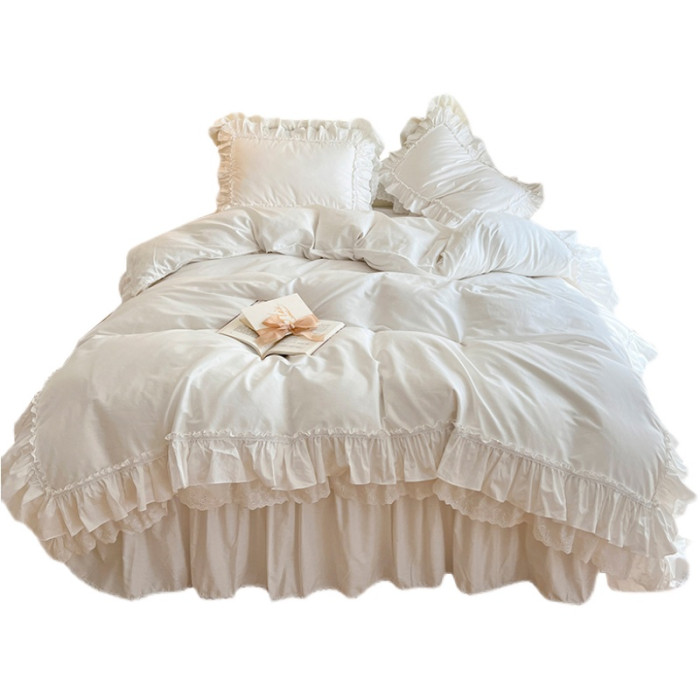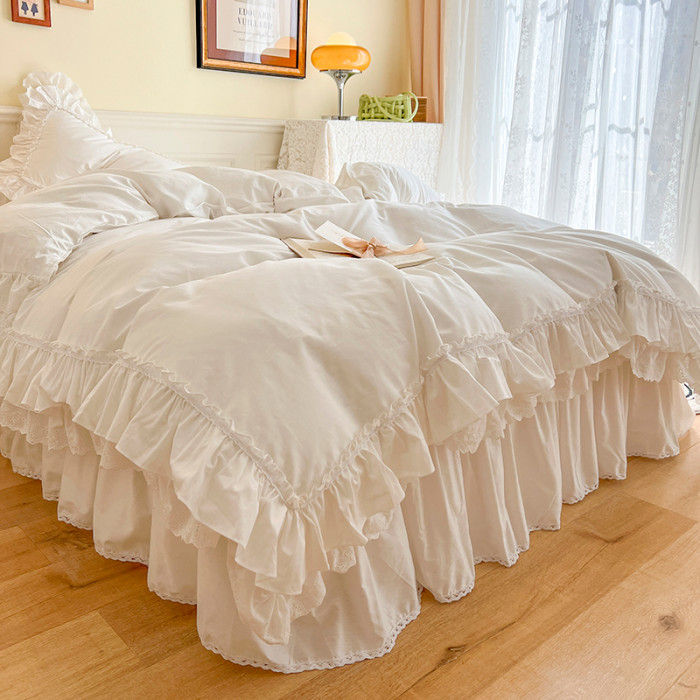 全棉公主風被套單件雙層荷葉邊純色少女心雙人被罩三件套床上用品