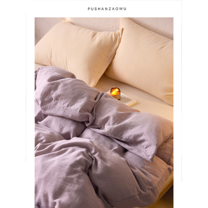 A類雙層皺皺紗純棉被套單件復古簡約全棉被罩150x200單人純色被單