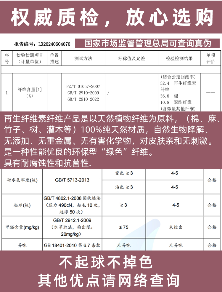 被面材質成分 再生纖維素纖維44.8% 棉44.2% 其他材質11%