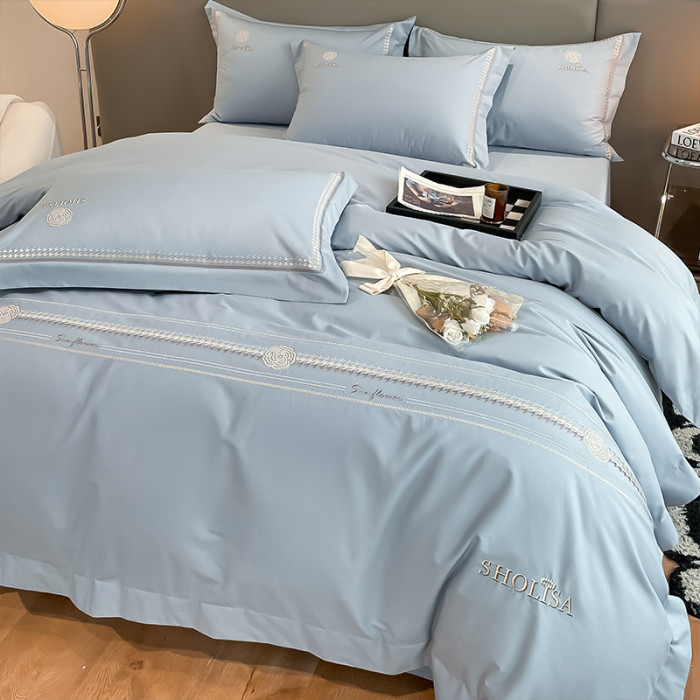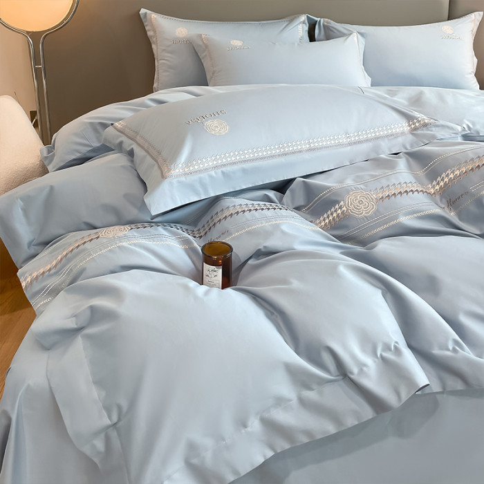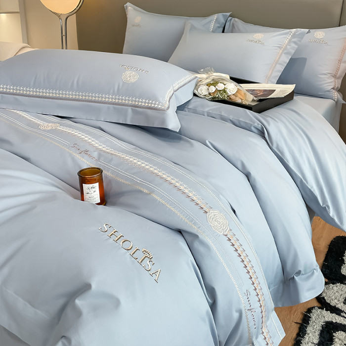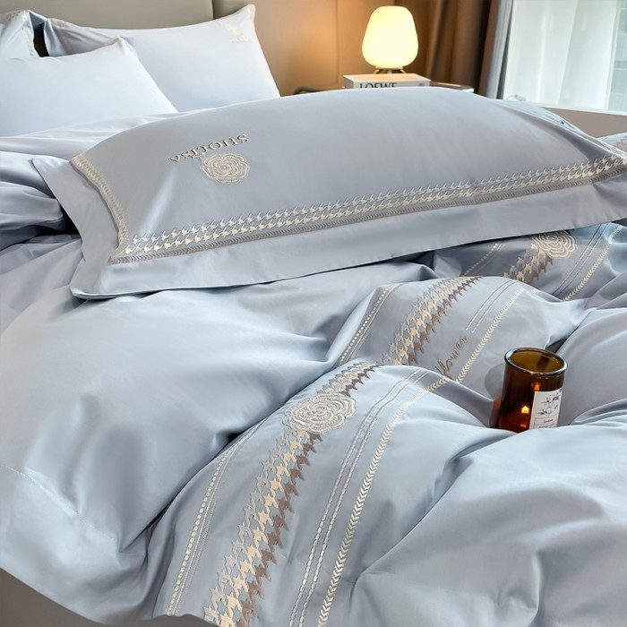 輕奢風180支純棉被套單件100全棉刺綉被罩四件套2024新款床上用品