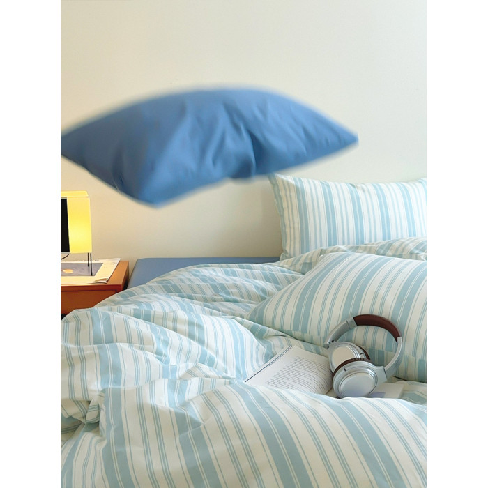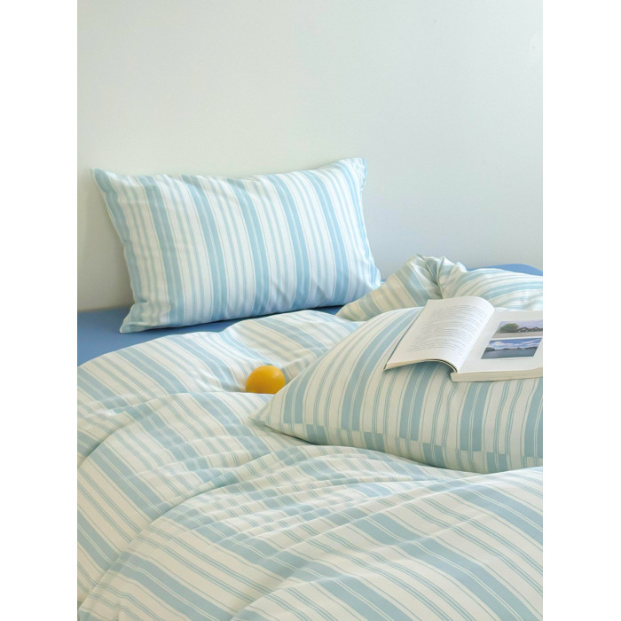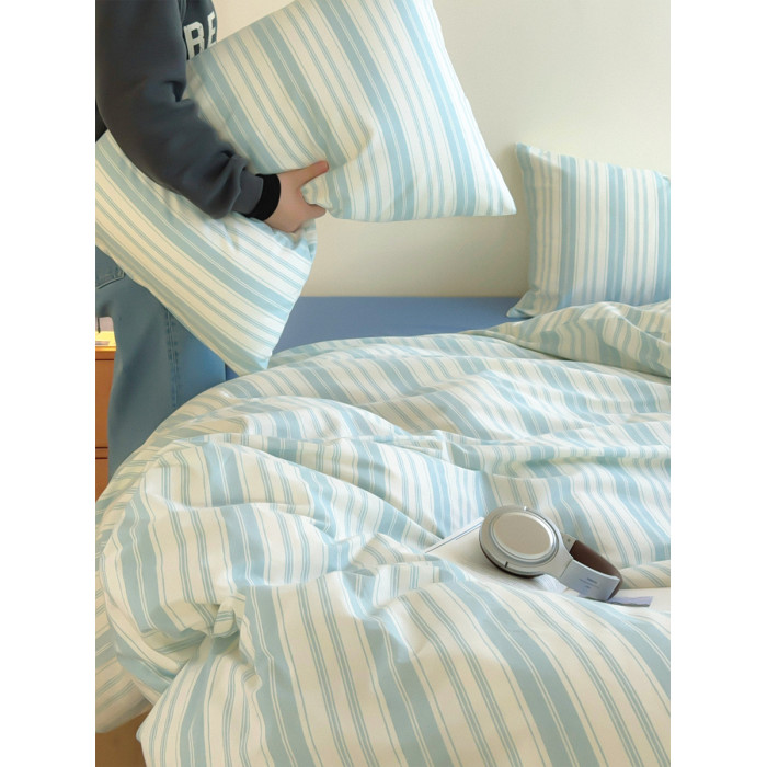 ins簡約藍條紋純棉全棉被套單件150x200x230學生床上三四件套被罩