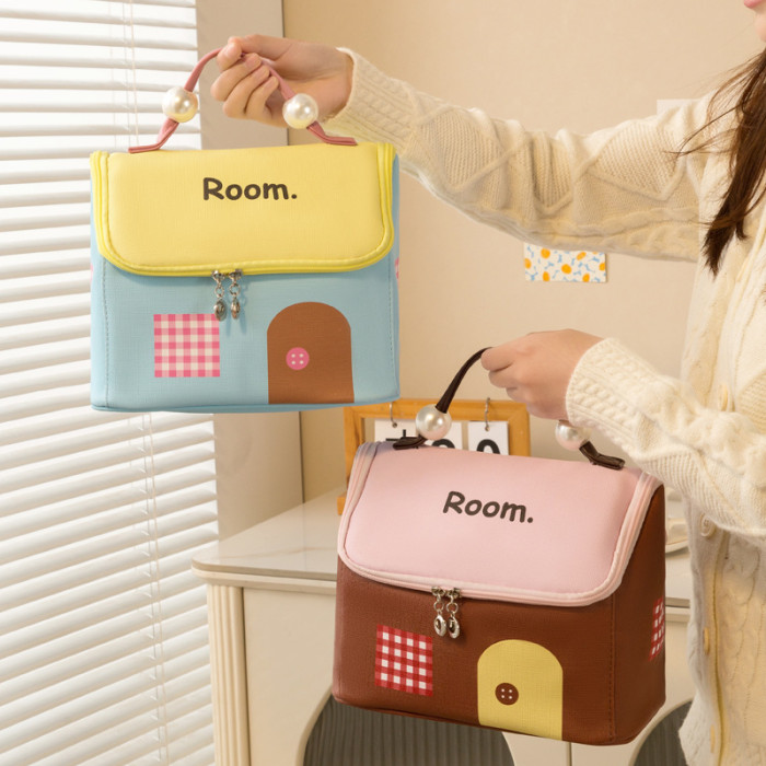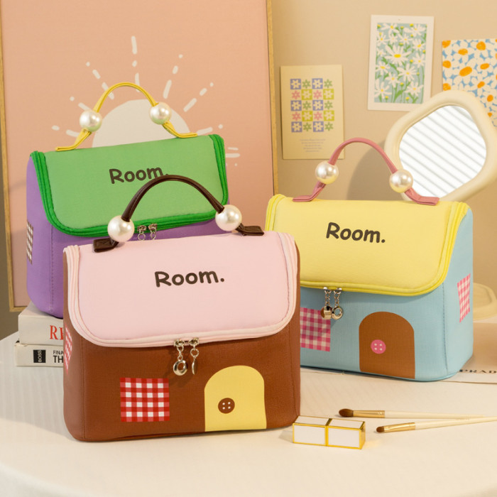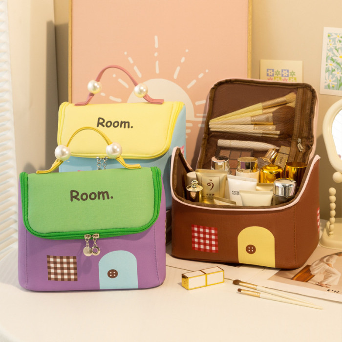 多巴胺小房子化妝包女大容量分區手提2025新款防水旅行可攜式收納袋