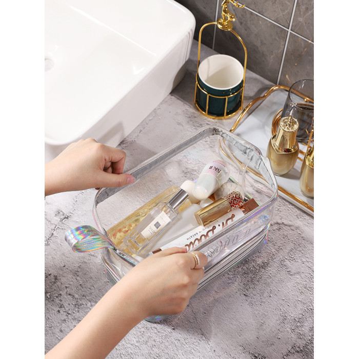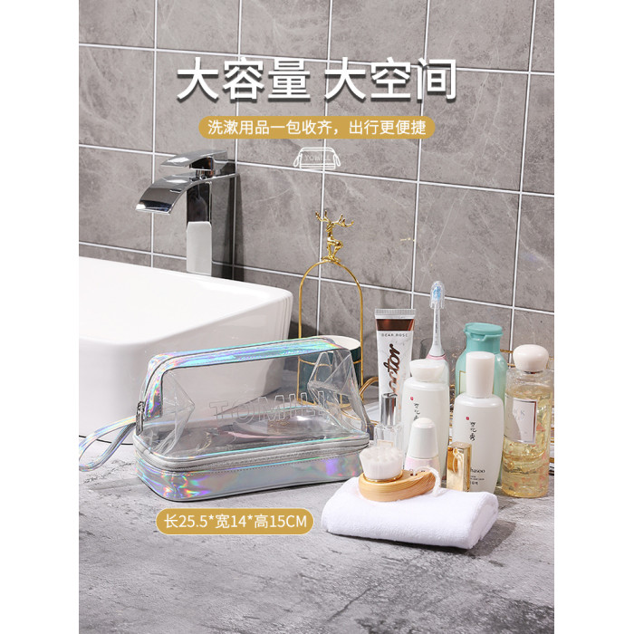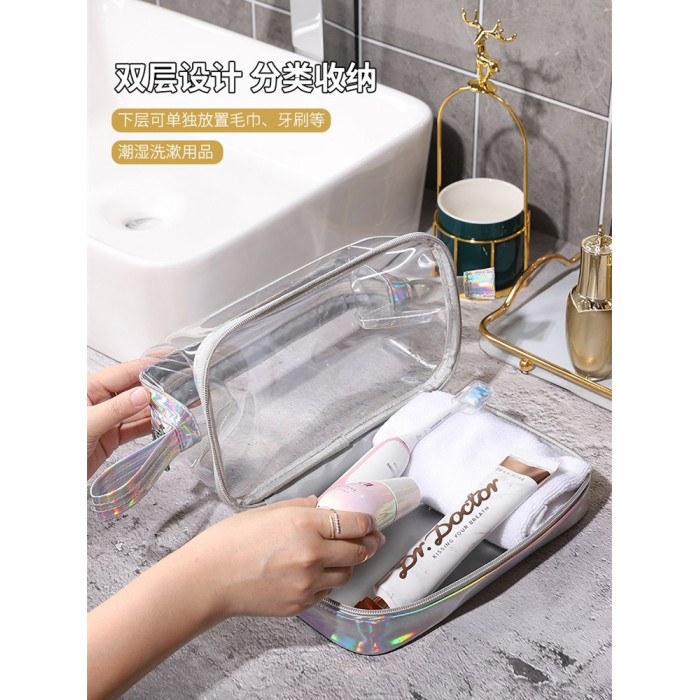 TOMILL透明洗漱包防水化妝包大容量旅行可攜式雙層乾溼分離收納包女