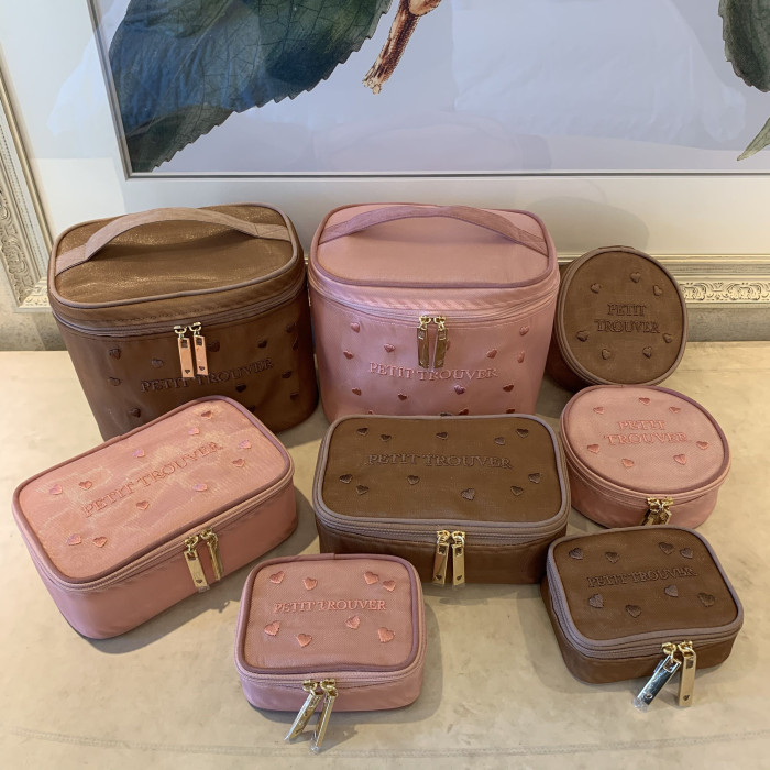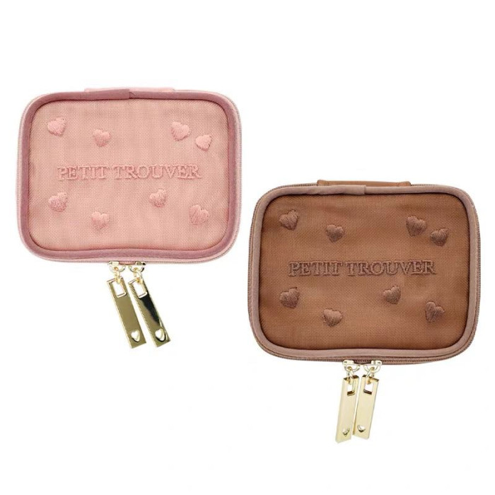 PETIT TROUVER愛心刺綉網紗百搭款化妝包大小號 襍物包口紅包收納
