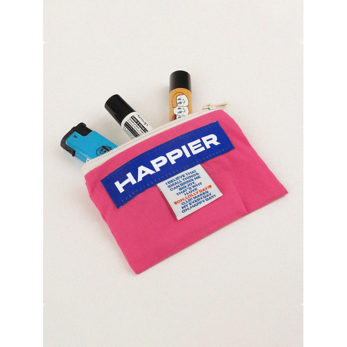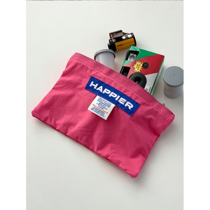 韓國ohlollyday幸福標簽收納袋拉鍊口紅化妝包大容量整理洗漱包袋