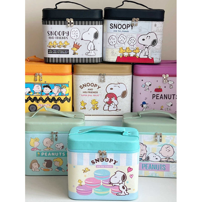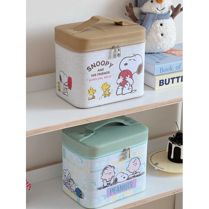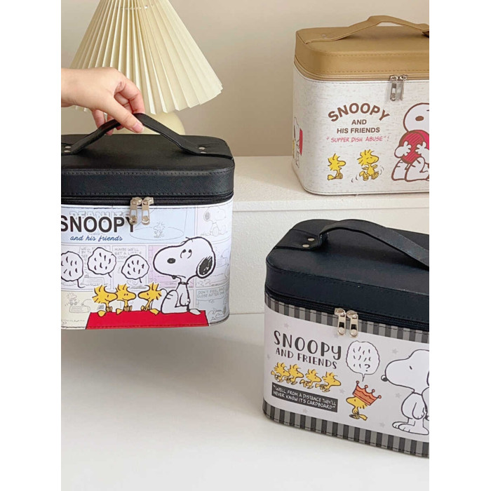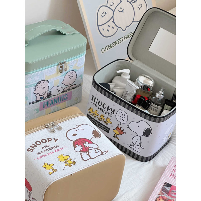 ins史努比化妝包手提包可攜式外出帶鏡一體收納包大容量旅行洗漱包