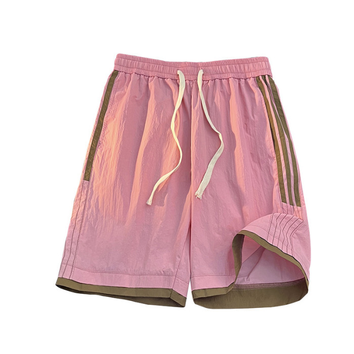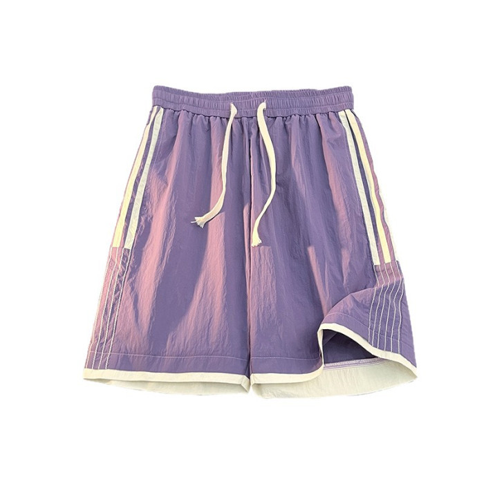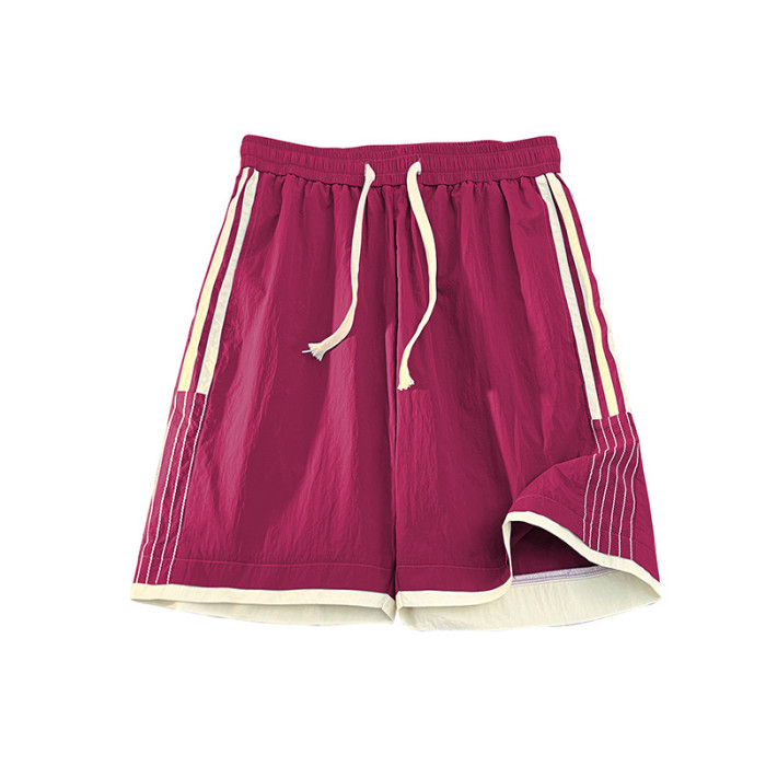 休閒運動速乾籃球短褲夏季新款寬松透氣美式百搭條紋直筒情侶款五