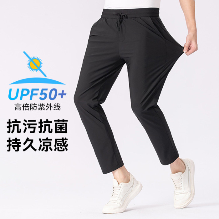 2025夏季無痕冰絲簡約純色男士休閒褲夏季薄款透氣速乾直筒褲子男