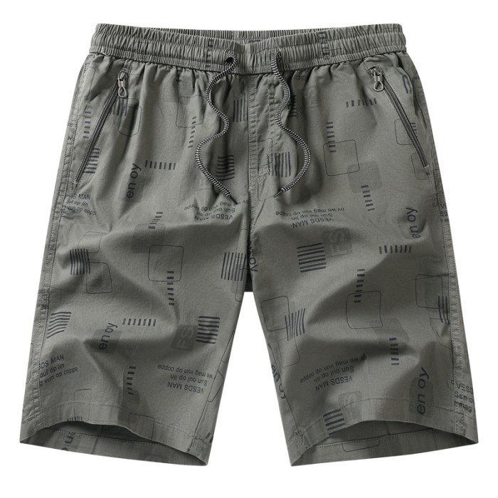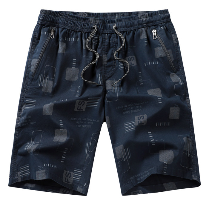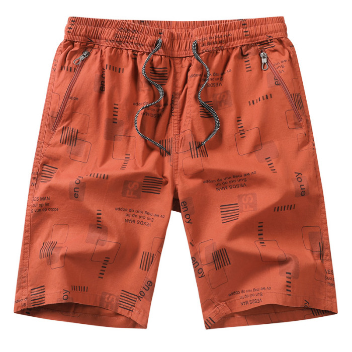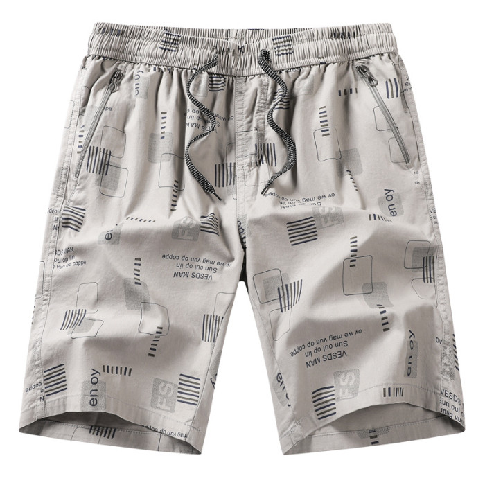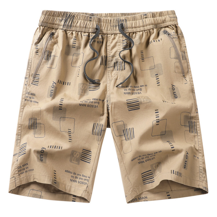 2025新款夏季純棉沙灘褲男中褲松緊腰居家寬松印花休閒短褲男士五
