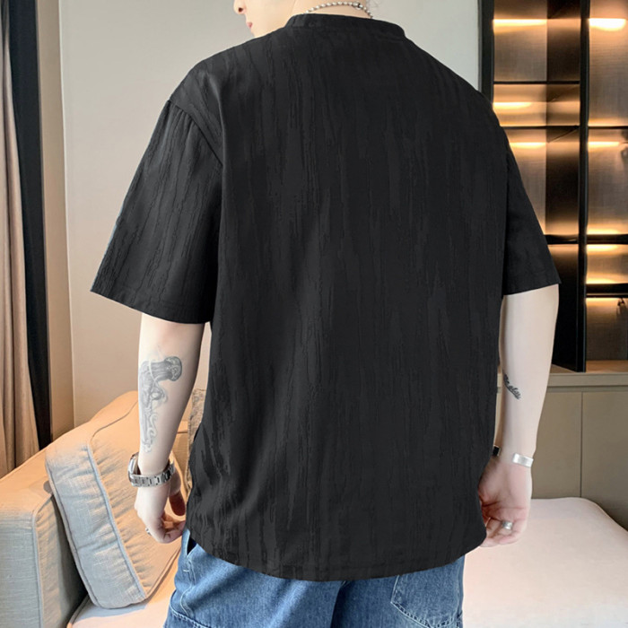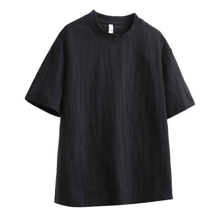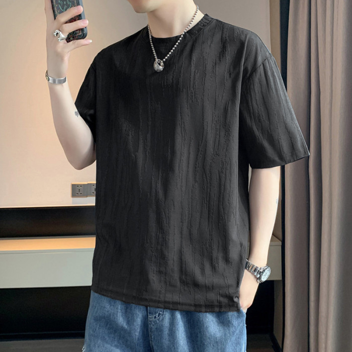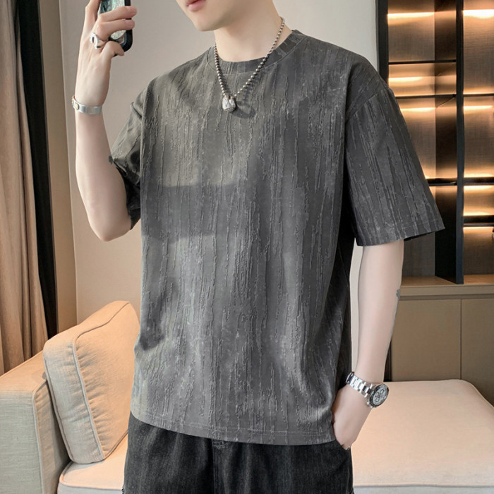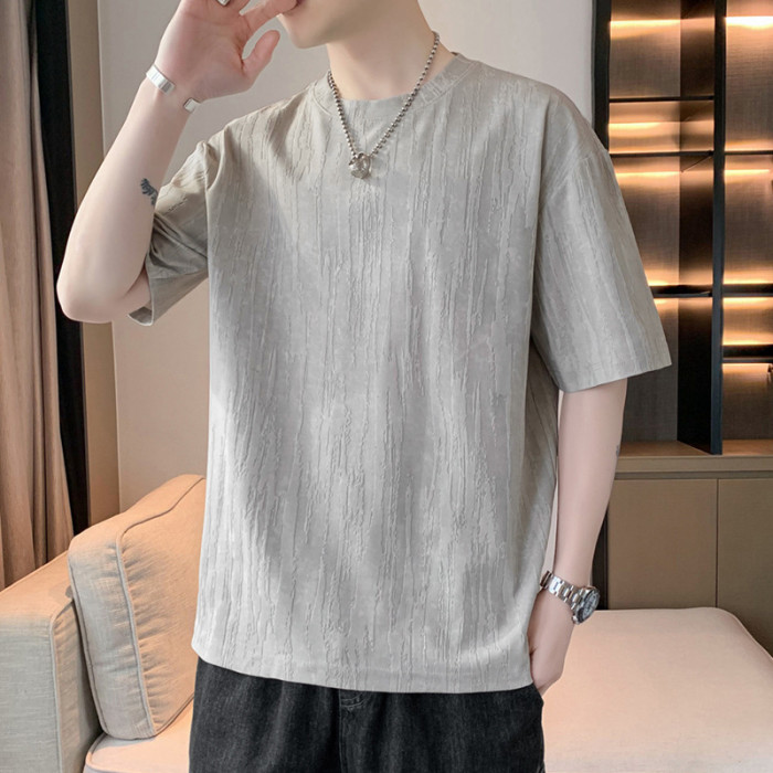 短袖t恤男士2025夏季薄款冰感潮牌寬松提花圓領半袖體恤上衣男裝