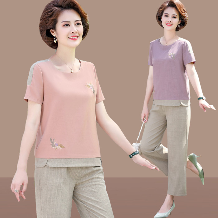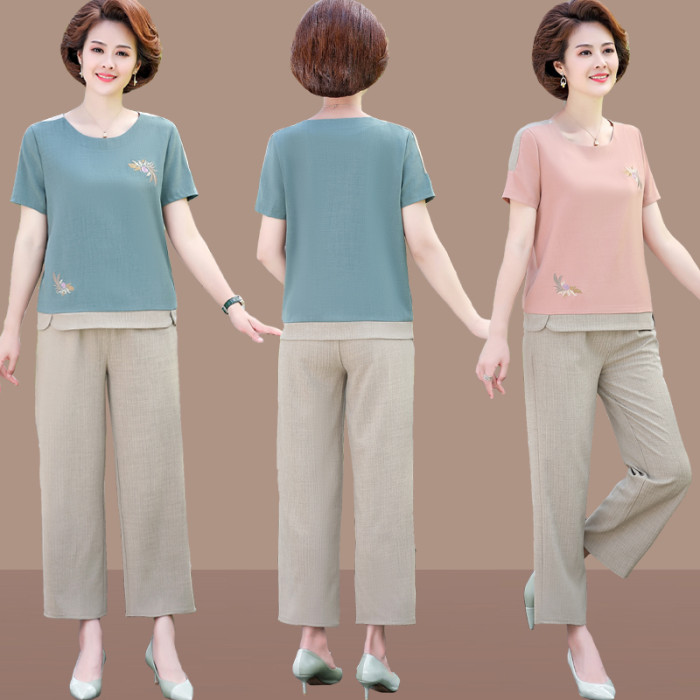 中年運動套裝女夏季新款時尚洋氣40-50嵗年輕媽媽夏裝兩件套短袖