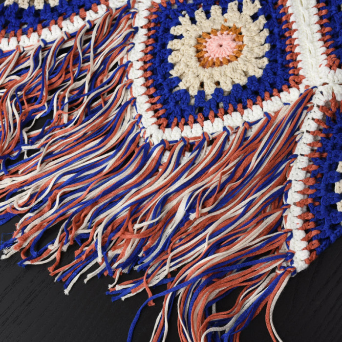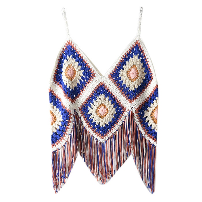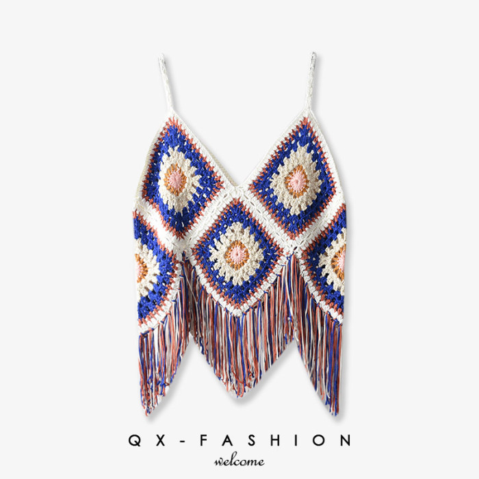 千尋 夏季個性原創設計撞色民族風拼色流蘇無袖針織吊帶衫背心女