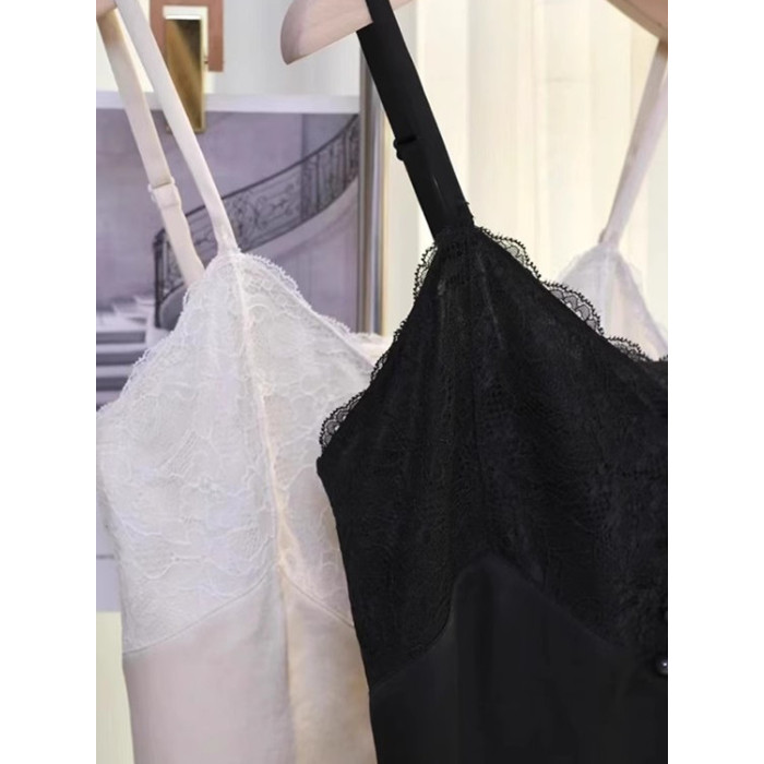 哥弟阿瑪施女裝2025夏季新款百搭V領蕾絲拼接修身顯瘦吊帶衫背心