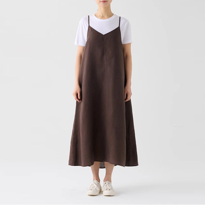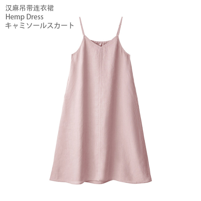 無印日式良品漢麻吊帶裙連衣裙顯瘦夏季寬松背心吊帶衫連身長裙子