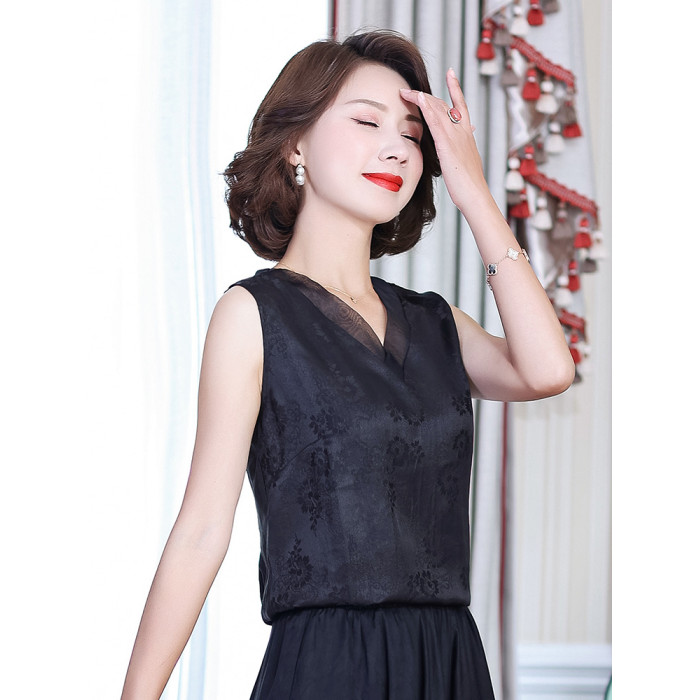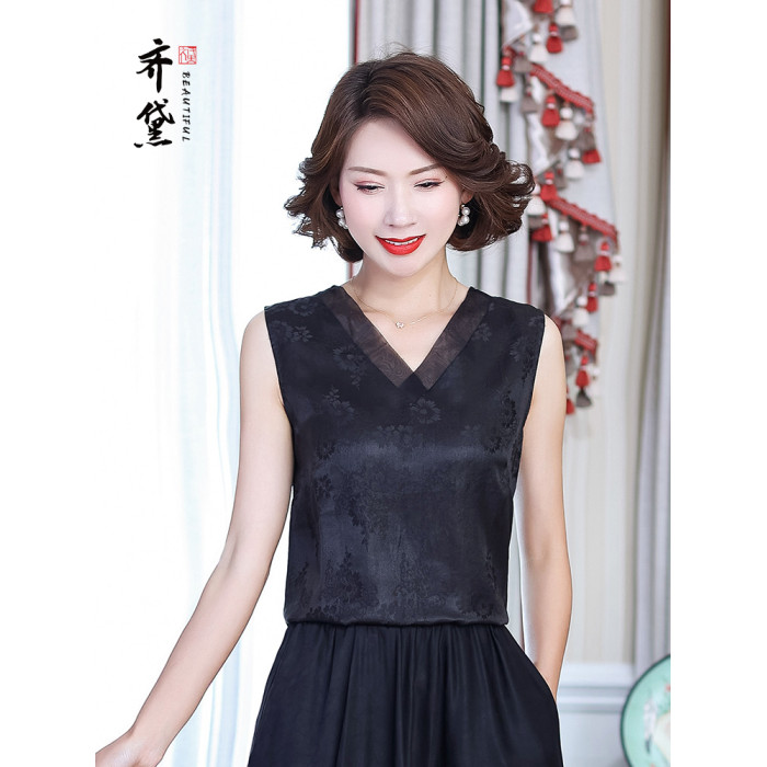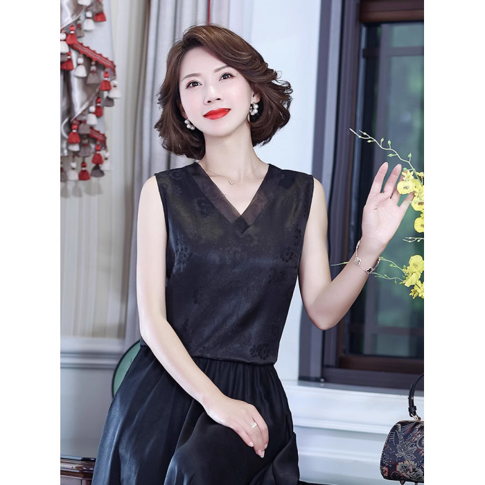 純色香雲紗背心短款V領吊帶衫真絲打底背心無袖大碼寬松桑蠶絲