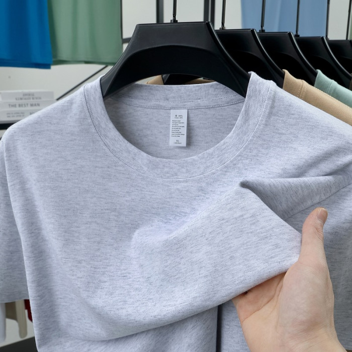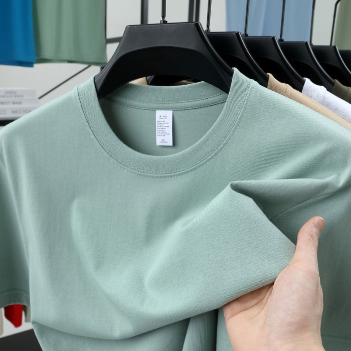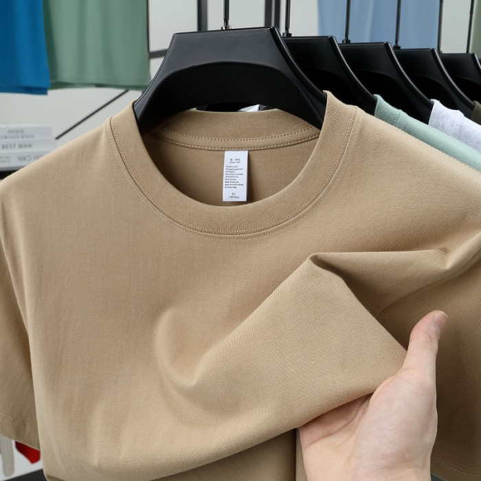 夏季新款230克正肩純棉男士短袖T恤時尚百搭圓領純棉純色T恤上衣
