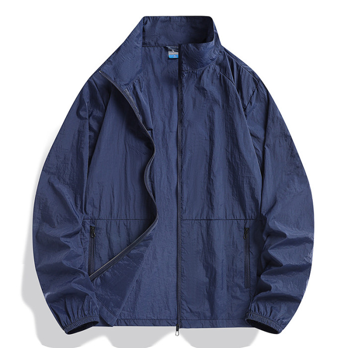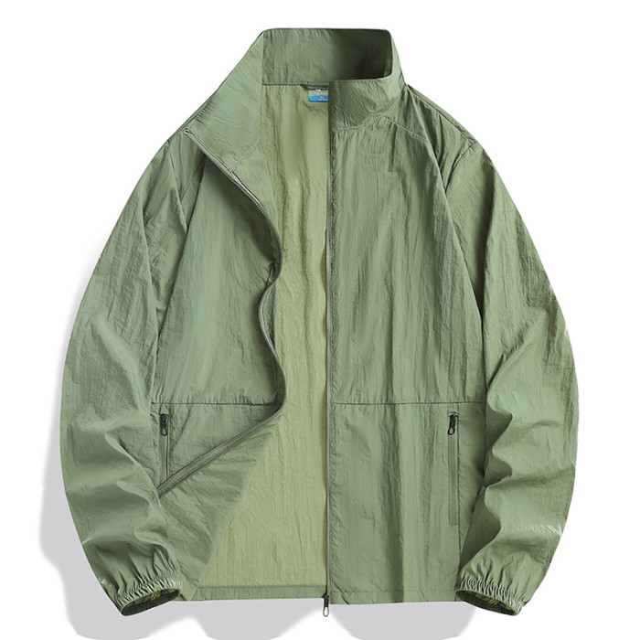 男士外套錦綸尼龍皺新款夏季薄款休閒夾克戶外釣魚防曬衣男生痞帥