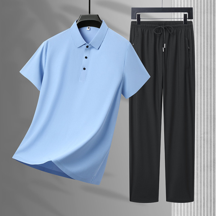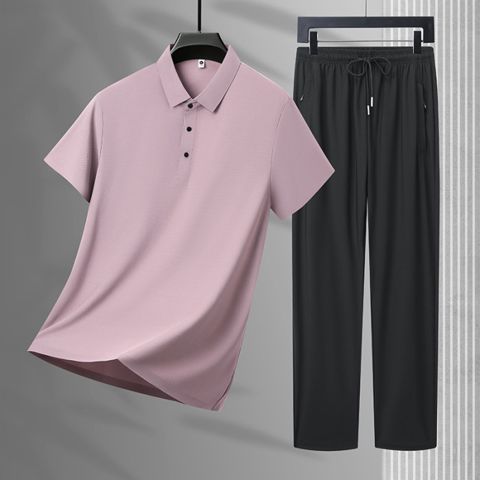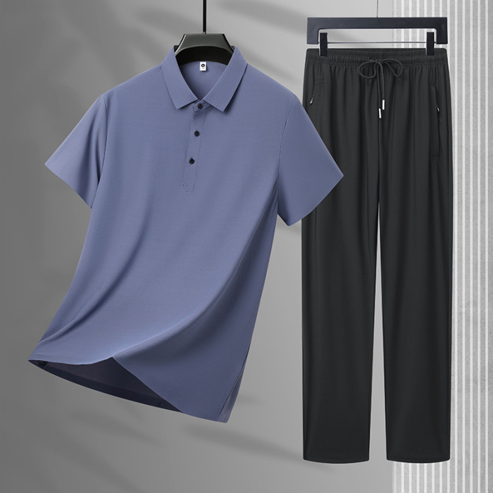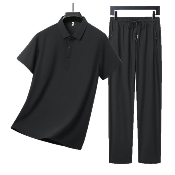 2025新款男士夏季短袖套裝中老年爸爸兩件套運動休閒套裝POLO衫