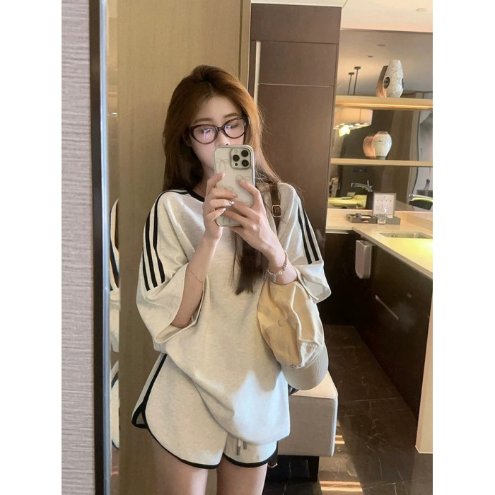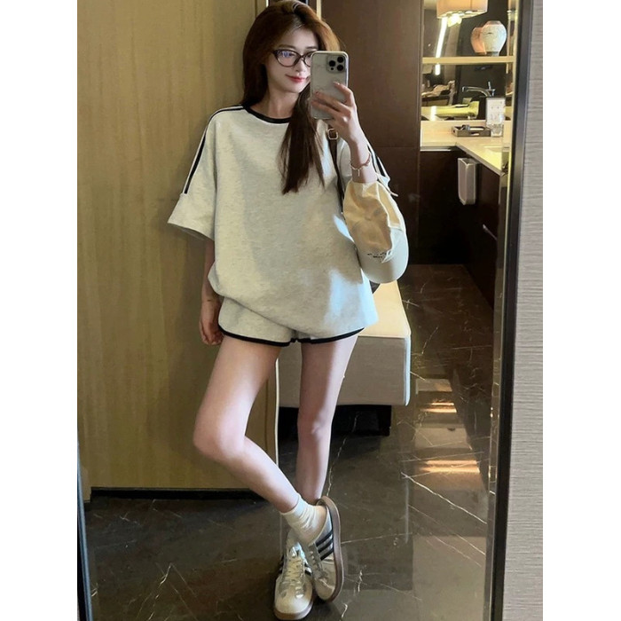 純棉時尚運動套裝女夏季學生減齡寬松顯瘦短袖短褲跑步休閒兩件套