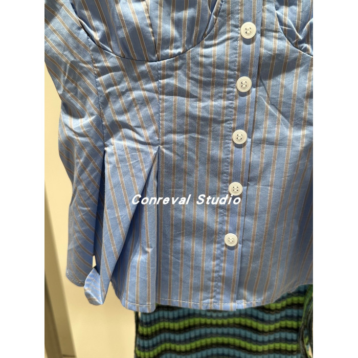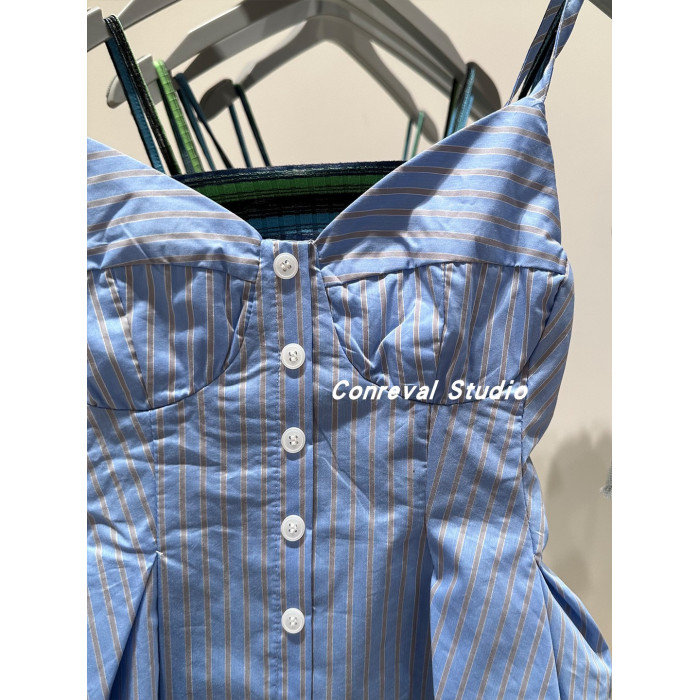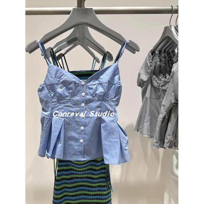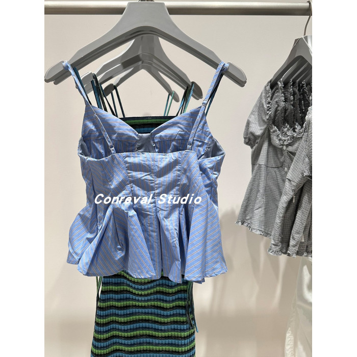 SH&UR2025夏季新款女裝時尚甜美休閒度假感撞色條紋吊帶衫上衣ins