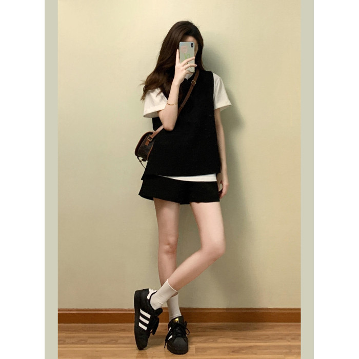 韓版高級感休閒運動套裝女2025新款慵懶風小個子短袖短褲兩件套夏