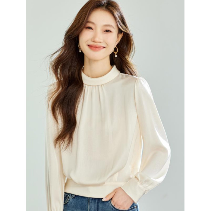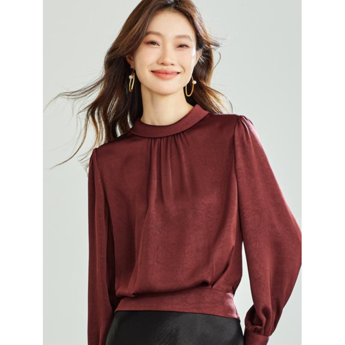 立領雪紡衫女上衣2025春季新款安可拉紅OL通勤洋氣小衫長袖女襯衣