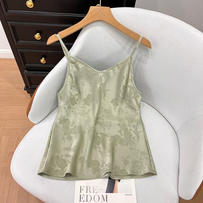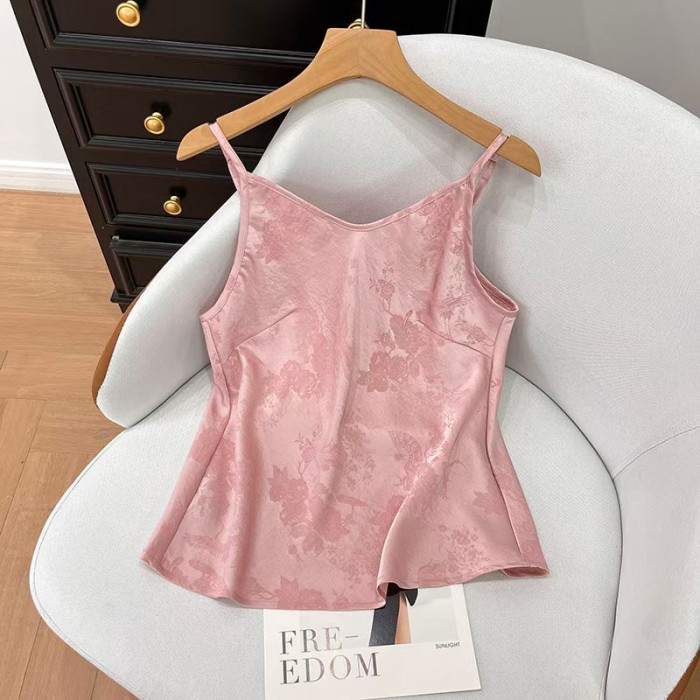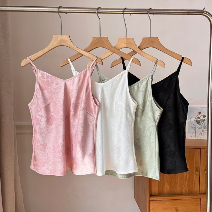 2025經典提花高級氣質百搭背心女中式打底上衣無袖國風吊帶衫