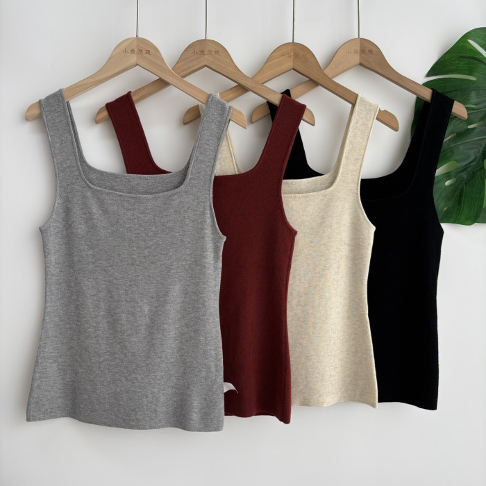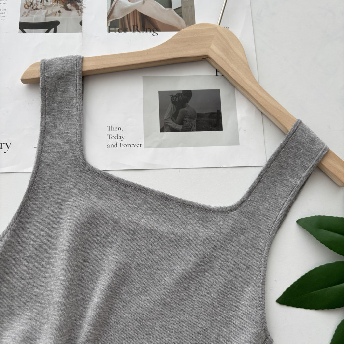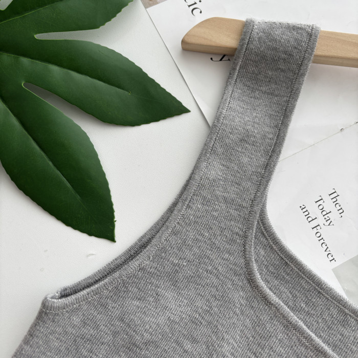 法式方領勸你買 蠶絲羊毛 百搭顯瘦寬肩帶 夏裝吊帶衫26F2/65822