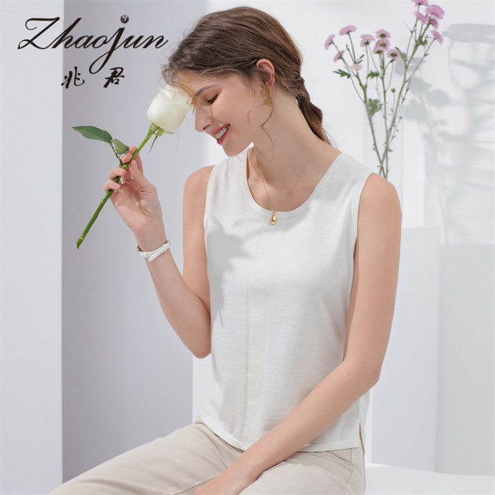 兆君 秋季內搭桑蠶絲新款純色吊帶衫薄款圓領女式工字背心