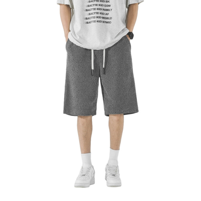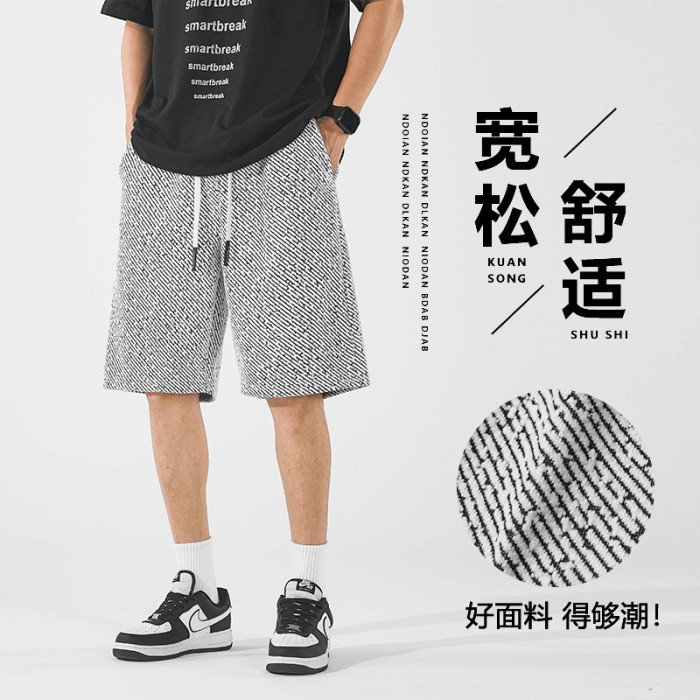 (檔口)雪尼爾銀絲斑馬條紋夏季短褲寬松情侶百搭透氣潮牌五