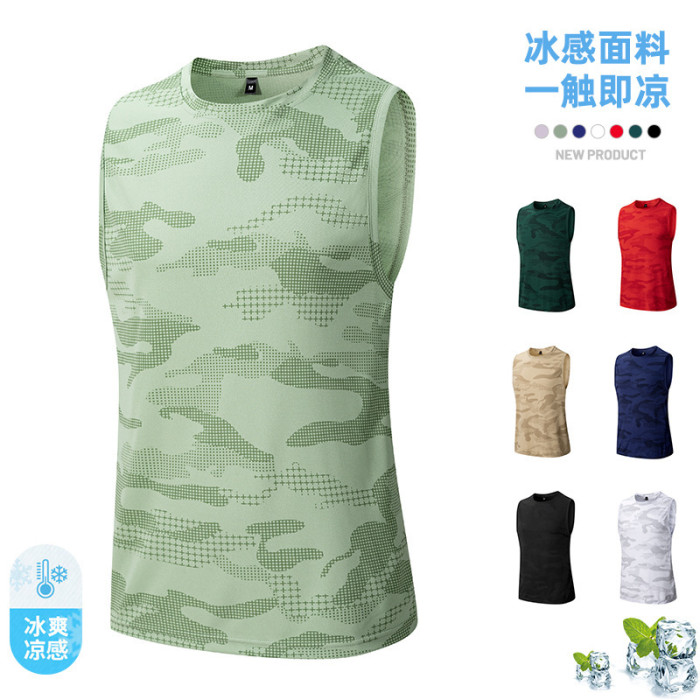 迷彩冰絲背心歐美新款冰感降溫速乾彈力休閒百搭田徑籃球上衣